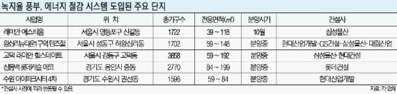 정부의 이 같은 방침에 따라 건설사들도 아파트 각 동간의 거리를 이격시키고 지상의 녹지비율을 높임으로써 냉난방비 등을 절약할 수 있는 단지를 잇따라 선보이고 있다. 녹지율이 높으면 기존 콘크리트나 아스팔트 등보다 복사열 등으로 인한 손실을 줄일 수 있어 온도관리가 수월하기 때문이다. 건설사들은 또 직접 전기나 열을 생산하는 신재생에너지 설비를 늘리거나 내부의 마감자재와 첨단 시스템 등으로 아파트의 에너지절약을 차별화하는 추세다.