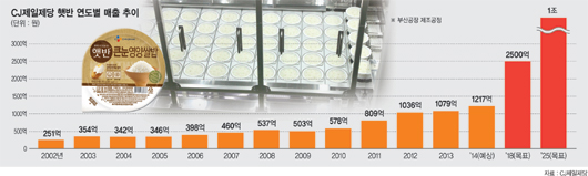 【 부산=김문희 기자】 "현재 65% 수준의 즉석밥 시장점유율을 70%대로 늘려 2018년까지 2500억원, 10년 후인 2025년에는 햇반매출만 1조원을 달성하겠다."
