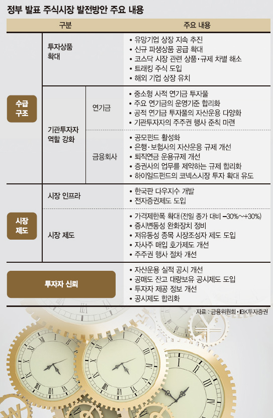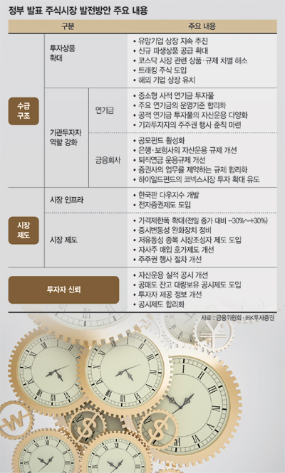 또 공적 연기금 투자풀 다양화, 은행.보험사의 자산운용 규제 개선, 종합금융투자사업자 외국환 업무 범위 확대 등으로 시장의 장기적인 성장에 힘을 보탰다.