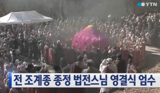 전 조계종 종정 법전스님 영결식대한불교 조계종 제11, 12대 종정을 지낸 도림당 법전 대종사의 영결식과 다비장이 오늘 오전 경남 합천 해인사에서 종단장으로 엄수됐다.해인사 구광구에서 열린 영결식에는 조계종 종정 진제 스님과 총무원장 자승 스님을 비롯한 스님들과 불자 등 8천여 명이 참석한 가운데 이뤄졌다.