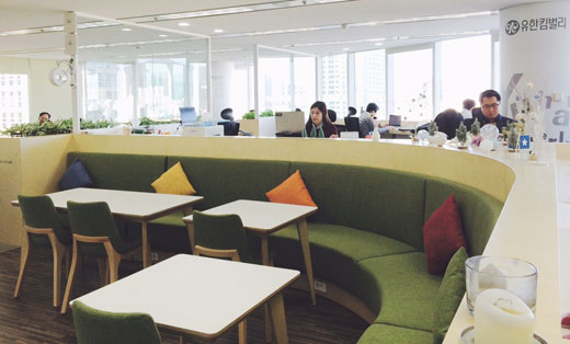 유한킴벌리 직원들이 부산에 위치한 스마트워크센터에서 업무를 보고 있다.