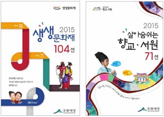 문화재청은 고객 맞춤형 서비스의 하나로 국민이 직접 참여하여 지역 문화재의 가치와 의미를 직접 보고(觀, see)․느끼고(感, feel)․즐길 수(樂, enjoy) 있도록 2015년「생생문화재 사업 104선」과「살아 숨 쉬는 향교․서원사업 71선」안내책자를 제작․배포한다고 4일 밝혔다.