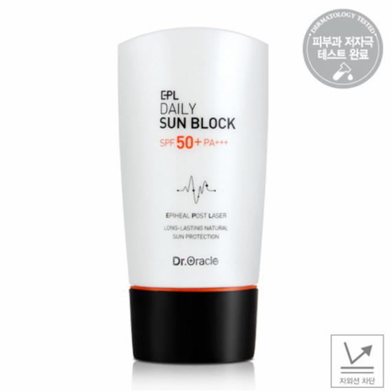 닥터오라클 EPL 데일리선블록 SPF50+, PA+++(50ml/3만7000원)은 피부 발림성과 밀착력을 높여 장시간 자외선 차단에 효과적이며 자외선으로 지친 피부에 진정과 보호 식물성분의 작용으로 건강한 피부로 유지해 줄 수 있다.
