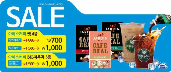 미니스톱이 오는 24일까지 아이스커피 할인 판매를 실시한다고 19일 밝혔다. 행사 상품은 미니스톱 자체 아이스커피 4종과 빅파우치음료 3종이다.