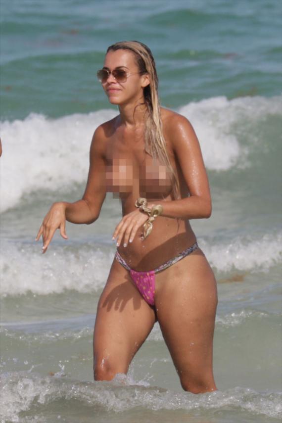 브라질 모델 줄리아나 리스(Juliana Reis)가 지난 6일 미국 마이애미 해변에서 상의를 벗고 물놀이를 즐기는 모습이 포착됐다.<Splash News 사진제공>