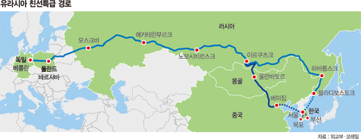 한국은 유라시아 대륙 진출을 오랜 시간 꿈꿔왔다. 이번 유라시아 친선특급이 그 물꼬를 틀 것으로 보인다.