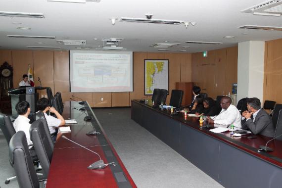 UPA는 11일 남구 울산항 마린센터에서 남아프리카공화국 트랜스넷(Transnet) 항만국장(해밀턴 누말로) 사절단을 대상으로 동북아 오일허브사업을 설명하고 있다.