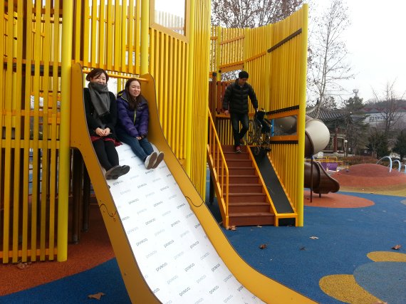 '꿈틀꿈틀 놀이터'는 서울시설공단과 대웅제약, 아름다운재단, 장애물없는생활환경시민연대 등이 협력해 조성한 것으로 어린이대공원 내 시설이 오래된 기존 놀이터를 리모델링해 개장했다.