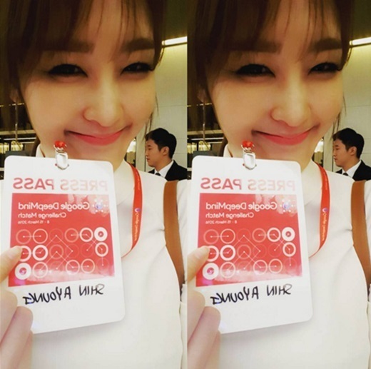 아나운서 신아영이 이세돌 9단과 알파고의 대국 현장 인증샷을 공개했다.신아영은 9일 자신의 SNS에 "이세돌 9단과 알파고 대국 현장. 저도 취재 왔어요. 대국 중간 중간 인터뷰로 찾아뵐게요"라는 글과 함께 한 장의 사진을 올렸다.공개된 사진에서 신아영은 환한 미소를 지은 채 카메라를 응시하고 있다.
