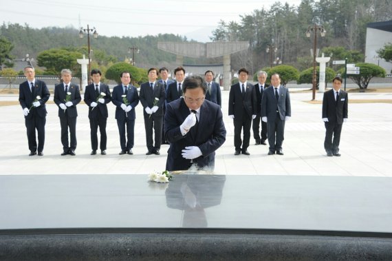 김석준 부산시교육감은 17일 오후 전국시도교육감협의회 총회 참석차 광주를 방문했다. 김 교육감이 광주시 국립 5.18 민주묘지를 참배 하고 있다.