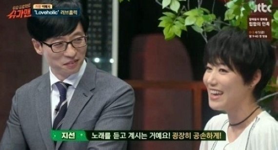 지난 30일 방송된 JTBC '슈가맨'에는 러브홀릭 지선이 출연해 유재석에 대한 고마움을 전했다.