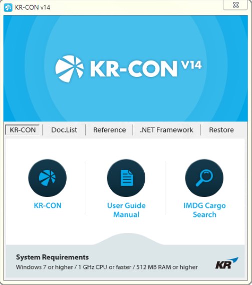 KR-CON 14차 버전의 가장 큰 특징은 국제해상위험물규칙(IMDG Code)에 따른 화물검색 프로그램을 자체개발, 추가로 적용한 것이다. 이를 통해 위험화물의 복잡한 상세 운송요건을 사용자가 한 눈에 쉽고 빠르게 파악할 수 있게 됐다.