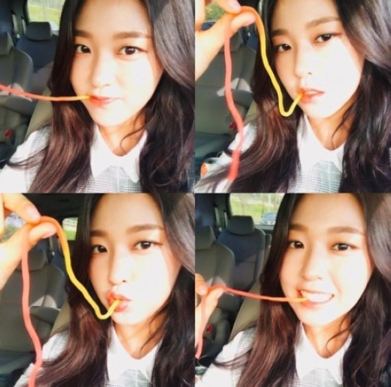 공개된 사진에서 설현은 젤리를 먹으며 카메라를 응시하고 있다.