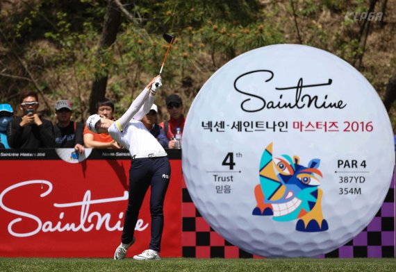24일 경남 김해시 가야CC 낙동-신어코스에서 열린 KLPGA투어 넥센-세인트나인 마스터즈 시즌 3승째를 거둔 박성현이 4번홀에서 힘찬 드라이버샷을 날리고 있다.