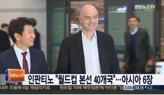 이어 인판티노 회장은 "(40개국 확대는) 오는 2026년부터 시행될 것이다"라고 설명을 덧붙였다.또한 인판티노 회장은 "남북한 간에도 축구 친선경기가 열릴 수 있으면 좋겠다"며 친선 경기에 대한 기대감을 표했다.한편 이앞서 인판티노 회장은 FIFA회장 선거 당시 월드컵 출전국을 현재 32개국에서 40개국으로 늘리기로 약속한 바가 있다./