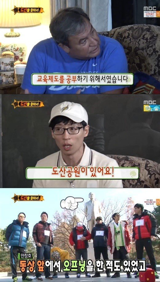 '무한도전' 유재석이 역사에 대해 무관심했던 자신의 모습을 반성했다.20일 오후 방송된 MBC 예능프로그램 '무한도전'에서는 '캘리포니아 LA 특집'의 두 번째 이야기가 공개됐다.이날 멤버들은 도산 안창호 선생의 막내아들 안필영 씨를 만났다.안필영 씨는 "필립 형에게 아버지에게 항상 말씀하셨다. '나는 나라를 지켜야 한다. 그러니 우리 가족을 지키는 것은 네 몫이다'라고 하셨다고 하더라"라고 전했다.멤버들은 미국 촬영이 끝난 후, 서울에 위치한 도산 안창호 선생의 기념관을 찾았다.유재석은 도산 안창호 공원에 도착해 "100m 걸으면 바로 보이는 곳인데 발견하지 못했다"며 "죄송하고 부끄럽다"고 고개를 숙였다.