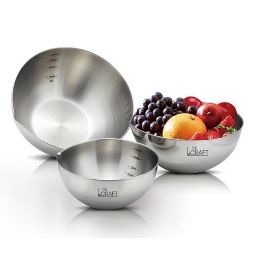 라모르믹싱볼은 최고급 스테인레스 304재질의 고품격 믹싱볼 세트로서 세척과 사용이 편리하고 위생적이다. 내부는 샤틴(무광택) 처리하고 외부는 유광 처리해 실용성과 고급스러움을 더했다. 내부면에 게량눈금이 표시돼 있어 별도의 게량컵 없이도 사용이 편리하다. 테두리에는 물코 부분이 있어 물,국물을 따를 때 옆으로 흐르지 않는 장점이 있다.