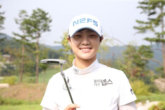 출시전 삼다수 마스터스 때 54홀 노보기를 기록, 우승의 원동력이 된 신제품 볼트 퍼터를 들어 보이는 박성현.