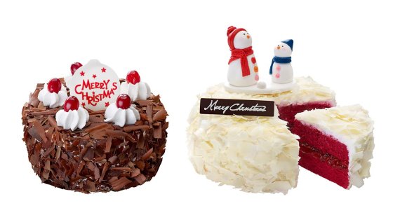 드롭탑의 크리스마스 케이크 초코포레누아, 화이트레드벨벳(왼쪽부터)