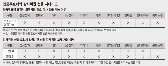 집중투표 도입 10대기업 중 삼성.현대.기아차 등 4곳은 외국기관 선호 이사 선임해야