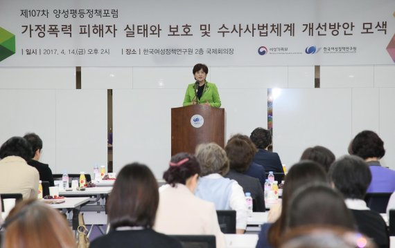 14일 여가부와 한국여성정책연구원이 서울 은평구 한국여성정책연구원에서 개최한 '제107차 양성평등정책포럼'에서 강 장관은 "포럼에서 논의되는 내용들을 적극 반영해 우리 사회의 가정폭력 근절과 피해자 보호, 가해자 처벌과 재범 방지 등을 위해 정부가 추진하고 있는 정책과 제도를 개선해 나가겠다"며 이같이 말했다.