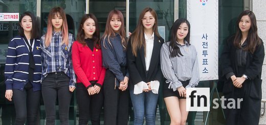 '여러분도 미리 투표하세요~'그룹 드림캐쳐(좌 부터 다미, 유현, 수아, 시연, 지유, 가현, 한동)가 4일 오전 서울 삼성동 주민센터에 진행된 '제19대 대통령선거' 사전투표에 참석해 투표전 포즈를 취하고 있다./totopurdy_star@fnnews.com fn스타 이승훈 기자