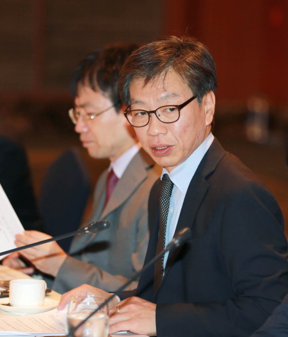 유정열 산업통상자원부 소재부품산업정책관(맨 앞)이 14일 서울 을지로 롯데호텔에서 '철강 수입규제 TF 긴급점검 회의'를 주재하고 있다. 연합뉴스