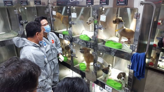 반려동물 특별위원회가 24일 경기도 고양시에 위치한 동물보호센터를 방문해 유기동물의 현황 및 관리 실태를 점검하고 봉사활동에 참여하고 있다.