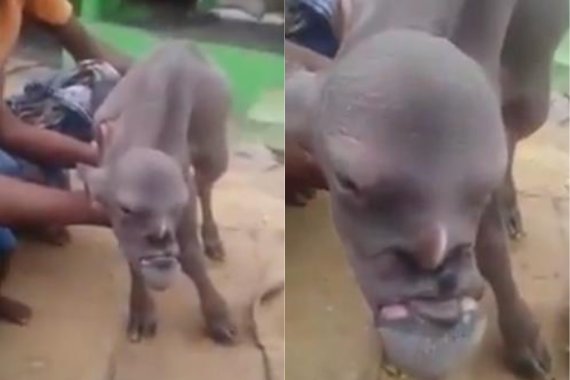 22일(현지시간) 영국 일간 더 미러는 인도의 한 마을에서 태어난 돌연변이 염소의 모습이 인터넷상에서 충격을 주고 있다고 보도했다.