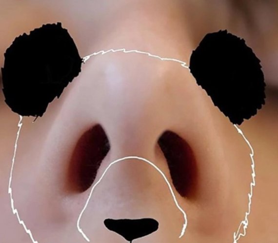 한 예로 자신의 코를 가지고 팬다를 그린다거나 눈과 속눈썹이 고슴도치가 되는 등 신체의 모양을 절묘히 이용한다.