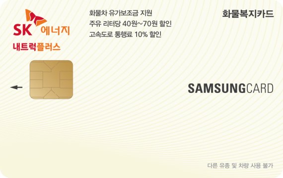 'SK에너지 화물복지삼성카드'는 SK에너지 '내트럭플러스주유소'에서 경유 주유시 리터당 최대 70원 할인 혜택을 제공한다.