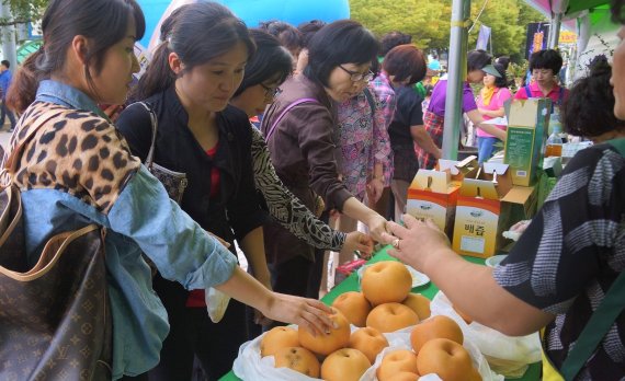 특히, 이번 행사에서는 우박 피해로 어려움을 겪고 있는 지역 배 농가들을 돕기 위해 ‘보조개 배’할인판매 코너를 개설해 시식과 함께 저렴한 가격에 판매키로 했다. ‘보조개 배’는 우박을 맞아 표면이 보조개처럼 파여 있다고 해서 붙여진 이름으로, 겉모양과 달리 맛이 좋고 가격도 저렴해 소비자들이 선호하고 있다.