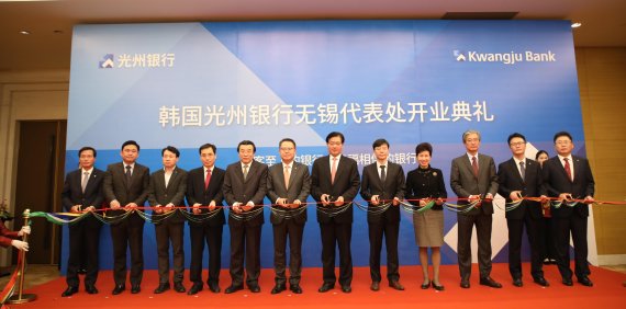 광주은행은 22일 오후 5시 송종욱 행장과 금융감독원 북경사무소 조운근 수석대표, 황흠 무석시 상무부시장, 뉴소분 무석시 부비서장 등이 참석한 가운데 무석시사무소 개소식을 가졌다.