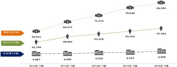 공간정보 관련 매출액 및 종사자 수 현황, 국토교통부 '2017 공간정보산업 조사'