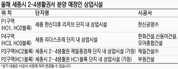 3일 업계에 따르면 이달부터 2-4 생활권에서 분양중이거나 분양을 앞둔 주상복합단지 내 상업시설은 △세종 한신더휴 리저브 단지 내 상업시설 등 총 4곳이다.