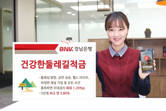 BNK경남은행은 둘레길 탐방과 금연 등 건강한 생활 실천 고객에게 우대금리를 제공하는 '건강한둘레길적금'을 출시했다고 5일 밝혔다.