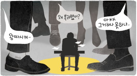 조직적인 괴롭힘도 자주 발생한다. 대기업 영업사원 D씨(29)는 최근 팀장으로부터 신입직원을 따돌리라는 말을 들었다. 팀장 마음에 들지 않는다는 게 이유였다. 신입직원만 빼고 채팅방을 만들어 업무를 공유했다. 팀장은 채팅방에서 신입직원을 수차례 비난했다. 그는 "신입사원을 잘 모르는데도 따돌림에 동참할 수밖에 없다"며 "나도 당할 수 있다는 불안감에 다른 방법이 없다"고 전했다.