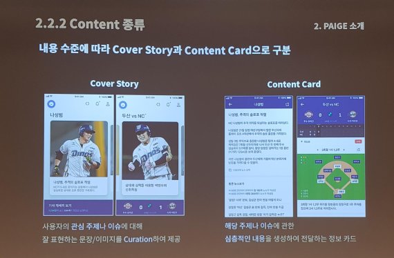 특히 AI 기술을 활용해 프로야구 팬들에게 다양한 콘텐츠를 설명해주고, 추천해주는 애플리케이션(앱) 'NC 페이지(PAIGE)'도 공개했다. 오는 4월 테스트 버전을 이용자들에게 선보인 뒤 오는 7월 프로야구 올스타전에 맞춰 정식 서비스를 진행한다.