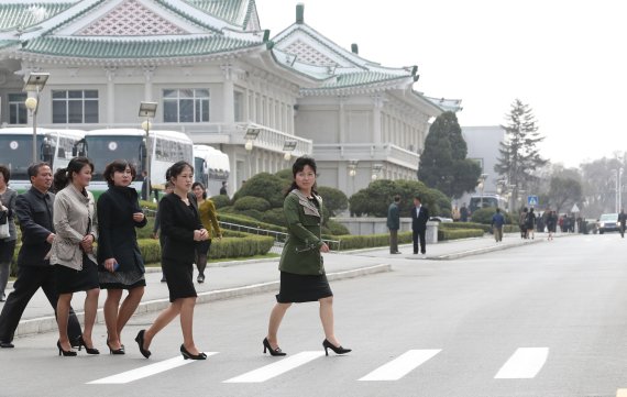 2일 오후 평양 창전거리에서 시민들이 오가고 있다. 사진공동취재단 연합뉴스