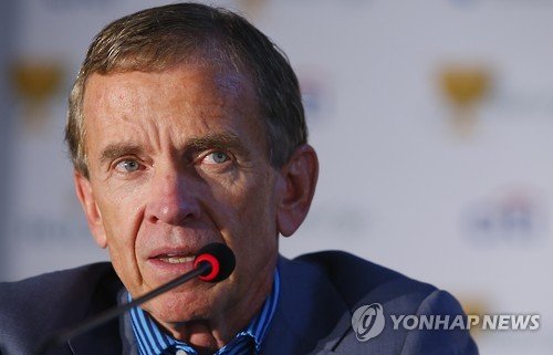 2015년 프레지던츠컵 때 연설하는 핀첨 커미셔너.(연합뉴스 자료사진) /사진=연합뉴스