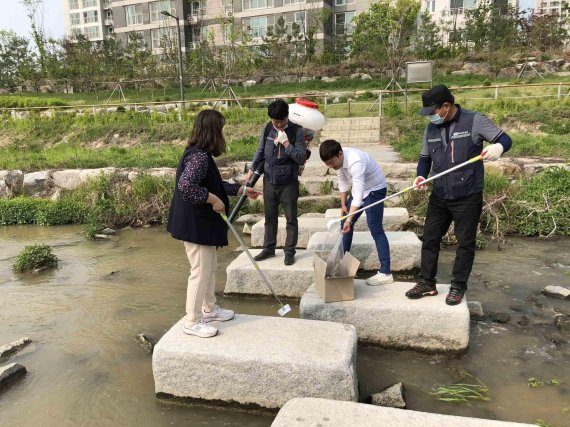 [양주=강근주 기자] 양주시가 모기 유충과의 전쟁에 돌입했다. 양주시는 토종 미꾸라지를 하천에 방류하고, 드론을 활용해 모기 서식지에 친환경 약품을 살포살 계획이다.
