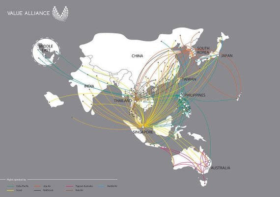 밸류 얼라이언스는 지난 2016년 한국, 싱가포르, 태국, 호주, 일본, 필리핀 등 각 나라를 대표하는 LCC들이 모여 세계 최초의 LCC 동맹체 결성을 선언했다. 밸류 얼라이언스에는 제주항공(한국), 세부퍼시픽(필리핀), 녹에어(태국), 녹스쿠트(태국), 스쿠트(싱가포르), 타이거에어싱가포르(싱가포르), 바닐라에어(일본), 타이거에어오스트레일리아(호주) 등 동아시아와 호주지역 LCC 8개사가 참여하고 있다. 이들 8개 항공사는 아시아 태평양과 오스트레일리아지역 160개 이상의 노선을 운항하고 있다.