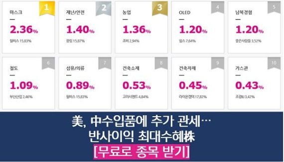 ▶G2 무역전쟁 고조… 반사이익 기대감 속 급등유망株 TOP3 [종목확인]