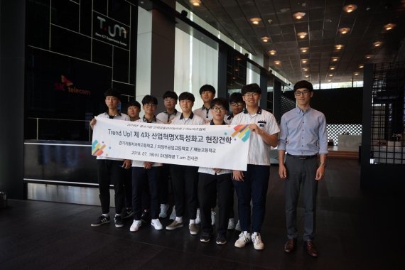이번 Trend Up 현장견학은 VR, 5G, 인공지능, 드론, 가상현실 등 제 4차 산업혁명 트렌드를 직접 체험할 수 있는 SK텔레콤 T.um(티움) 전시관을 각 학교별로 70~80여분간 체험하는 프로그램으로 진행됐다.