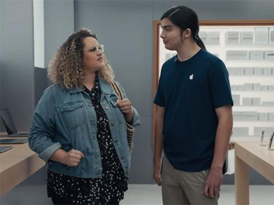 아울러 ‘펜’ 편에서는 한 여성 손님이 지니어스바 직원에게 애플 펜슬에 대해 묻는 장면으로 광고가 시작된다. 손님은 직원에게 애플 펜슬과 갤럭시노트9 S펜의 차이를 묻자 직원은 “애플 펜슬은 아이패드에서만 작동한다”고 답한다. 이에 손님은 “그럼 내 폰에서 쓸 수 있는 건 무엇인가”라고 다시 묻자 직원은 “당신 손가락”이라고 말했다.