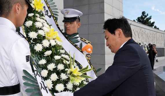 [제주=좌승훈기자] 15일 제73주년 광복절을 맞아 원희룡 제주특별자치도지사가 제주시 조천만세동산에 있는 애국선열추모탑을 찾아 참배를 하고 있다.
