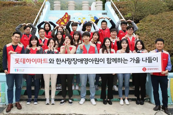 롯데하이마트는 15일 경기도 광주시에 위치한 ‘한사랑장애영아원’ 장애아동 16명을 초청해 잠실 롯데월드 어드벤처에서 ‘가을 나들이 봉사’ 활동을 펼쳤다. 또 아이들의 안전한 외출을 위한 차량용 카시트와 식기세척기, 스팀청소기 등 총 260만원 상당의 물품도 지원했다.