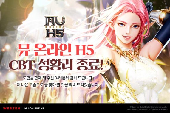 웹젠은 15일 정식서비스 사전예약을 통해 선정한 참가자들을 대상으로 4일 동안 진행한 ‘뮤 온라인H5’의 비공개테스트(CBT)를 마쳤다.