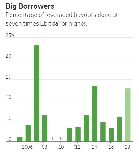 S&P 글로벌마켓츠 인텔리전스의 LCD(차입실시간데이터)에 따르면 올들어 9월까지 차입인수 가운데 13% 가까이가 인수대상 기업의 상각전영업이익(EBITDA) 7배 이상에 맞먹는 규모의 자금조달로 이뤄졌다.