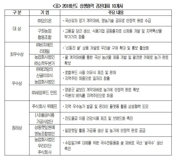 '2018 농업과 기업간 상생협력 경진대회' 개최